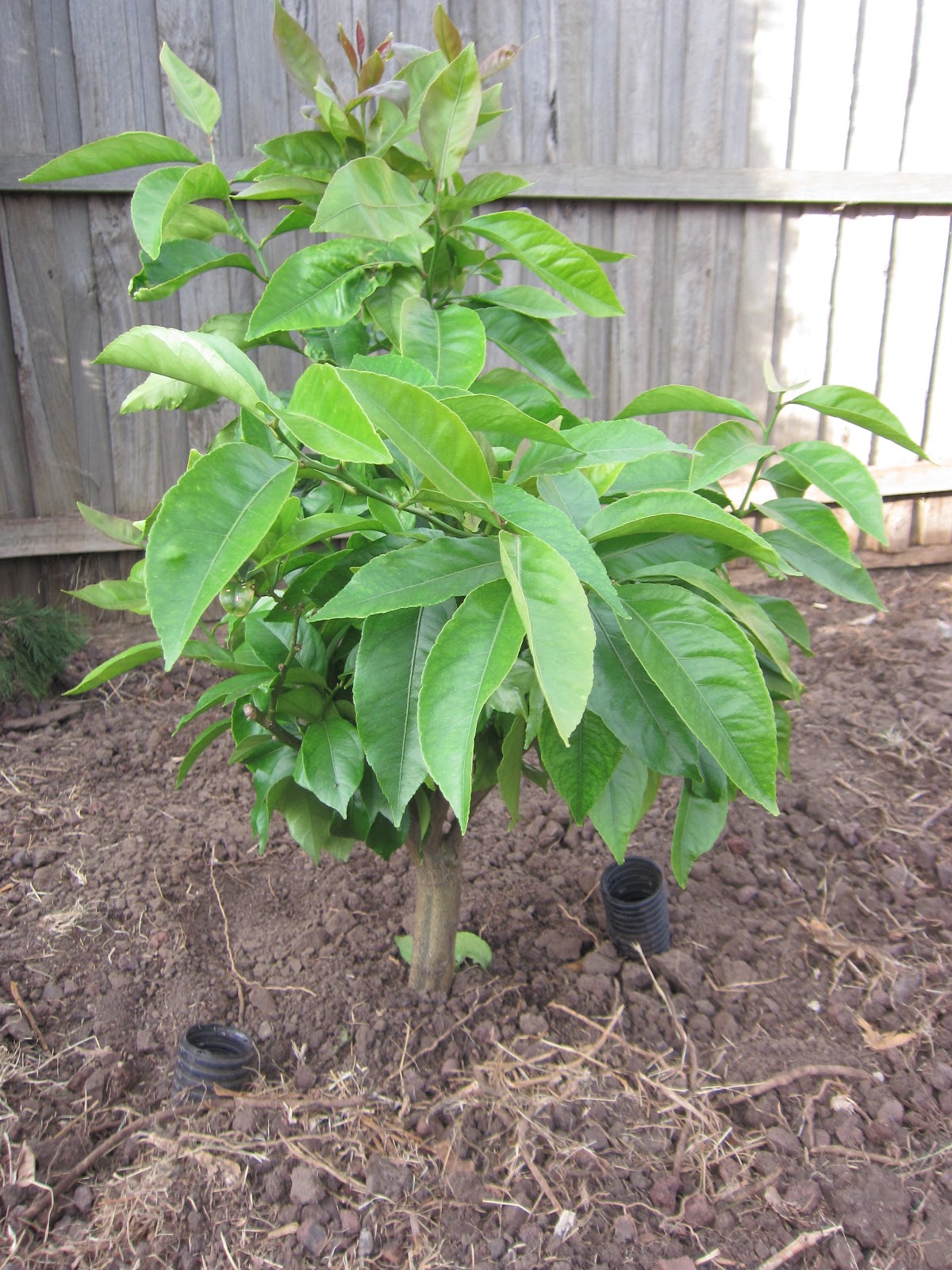 We placed the tree in in the middle of the hole with the soil that it originally had. After this stage, we filled in the hole making sure that the tree was upright. We firmly patted down the soil on top. Then, we watered the plant generously with some seaweed mixture. (We repeated the application of the seaweed mixture about a week later as well.) Lastly, we layered some mulch (approximately 5cm thick) around the tree trunk and the pipe ends.